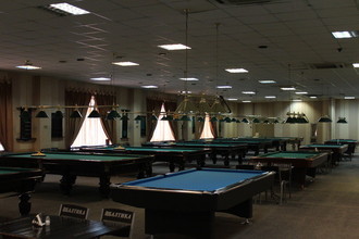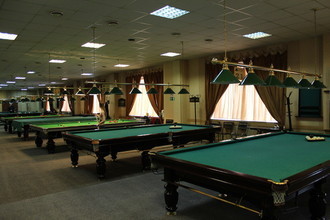 Просторный зал заведения вмещает 36 профессиональных столов с необходимым инвентарём для игры. Помещение оснащено кондиционерами, поэтому здесь комфортно даже в жаркие летние дни. Для посетителей предоставляется пользование бесплатным wi-fi для доступа в интернет со своих гаджетов.