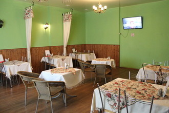 В здании работает кафе, которое предлагает гостям вкусные блюда русской и европейской кухни: супы, салаты горячие и холодные закуски, основные блюда, десерты и напитки. В дневное время заведение приглашает всех на бизнес-ланчи, а у кого нет времени заехать в кафе, могут воспользоваться доставкой и заказать сытные бургеры, сочные пельмени, лапшу, аппетитные блюда на гриле, лагман и румяные блины .